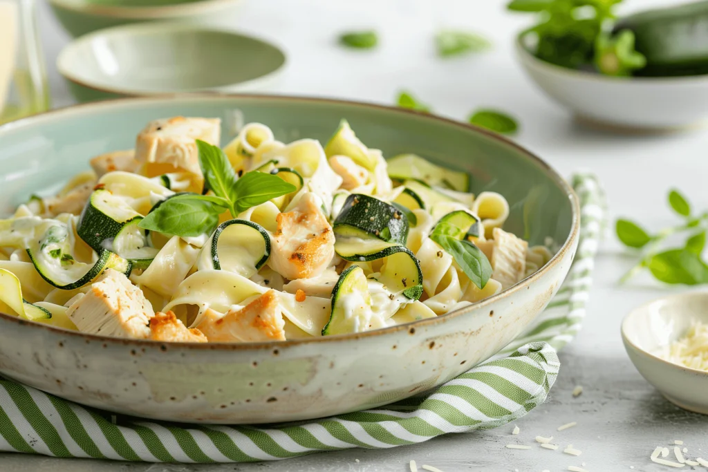 Cremige Zucchini-Hähnchen-Pasta