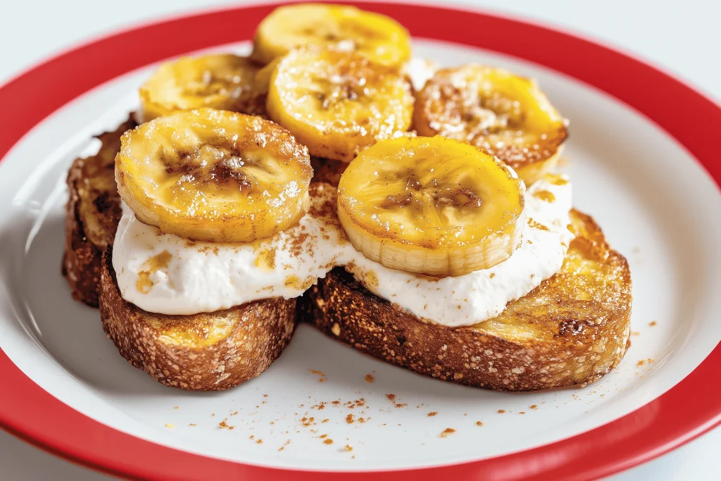 Arme Ritter mit gebratenen Bananen und Frischkäse oder Joghurt