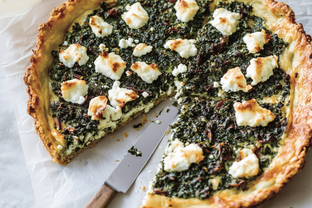 Grünkohl-, Kräuter- und Ziegenkäse-Tarte