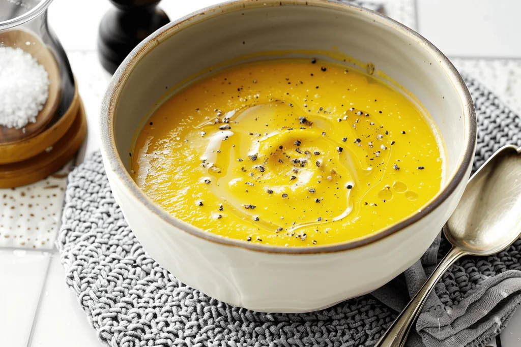 1. 1 Zwiebel, 1 Knoblauchzehe und 20 g Ingwer schälen und fein würfeln. 400 g gereinigten Hokkaido-Kürbis waschen und grob hacken. 2. 2 EL Rapsöl in einem großen Topf erhitzen und Zwiebeln, Knoblauch und Ingwer anbraten. 3. Kürbisstücke dazugeben und kurz anbraten. 4. Fügen Sie 200 g/7,05 oz rote Linsen, 600 ml/20,28 fl oz glutenfreie Gemüsebrühe ohne Zuckerzusatz und 400 ml/13,53 fl oz Kokosmilch hinzu. 5. Zum Kochen bringen, abdecken und bei schwacher Hitze 15–20 Minuten köcheln lassen, bis der Kürbis weich ist. 6. Vom Herd nehmen und die Suppe mit einem Stabmixer pürieren. 7. Mit Salz und Pfeffer abschmecken und in tiefen Tellern oder Schüsseln servieren.