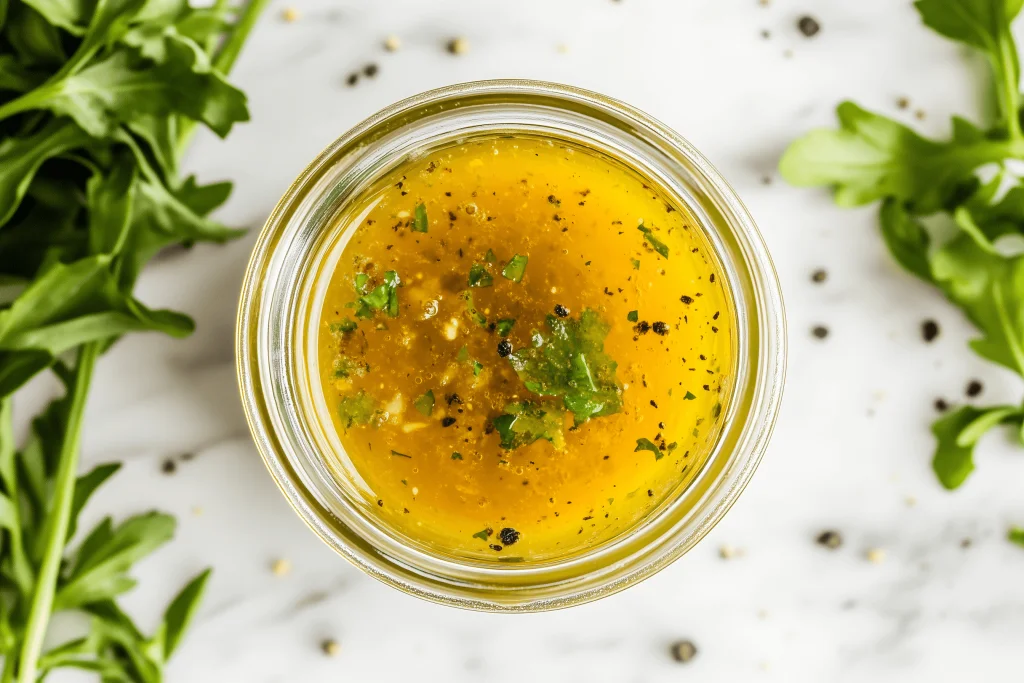 1. Schütteln Sie 60 ml / 2,03 fl oz Olivenöl extra vergine, 1 EL Weißweinessig, 30 ml / 1,01 fl oz frisch gepresster Orangensaft, 1 TL Honig und 1 TL gehackte Oreganoblätter in einem Schraubglas. 2. Bis zu einer Woche im Kühlschrank aufbewahren. 3. Vor dem Servieren auf Zimmertemperatur bringen.