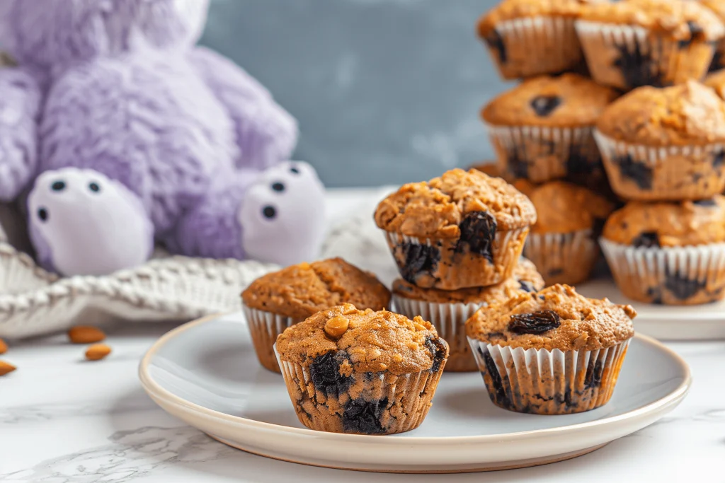1. Preheat the oven to 180°C fan (200°C/400°F). 2. Add 290g / 10.23oz pitted prunes in apple juice to a large bowl and break up slightly. 3. Add 115ml / 3.88fl oz apple juice or purée, 80g / 2.82oz ground almonds, 2 heaped tbsp milled flaxseeds, 120g / 4.23oz self-raising flour, 1 tbsp maple or fruit syrup, 1 tsp baking powder, 3 tsp almond extract, 1 tsp pure vanilla extract, 3 eggs or chia eggs, 2 tbsp milk of your choice, and 70g / 2.47oz melted unsalted butter or coconut oil. 4. Stir until just combined. 5. Divide the mixture between muffin cases. 6. Bake for 15-20 minutes for large muffins or 14-16 minutes for mini muffins.