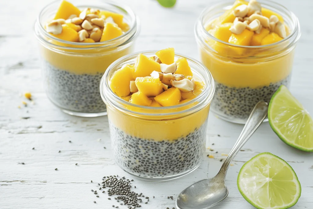 Chia Pudding with Lime, Mango and Macademia