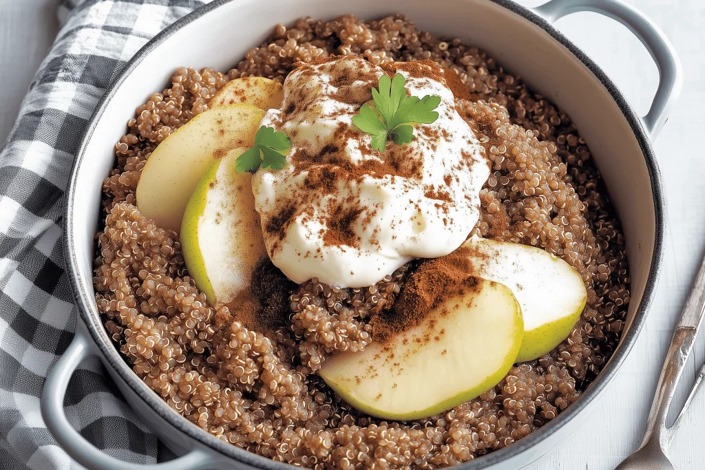 Chocolate Quinoa with Yoghurt and Buttery Pears