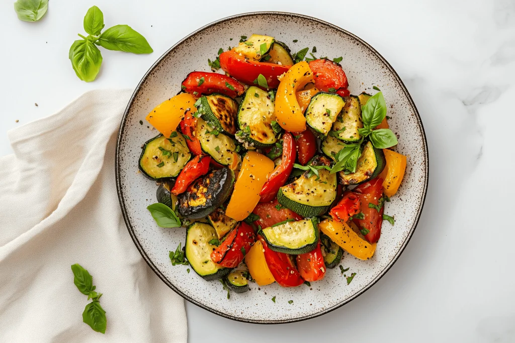 By pouring over the flavorful marinade after the veggies are cooked instead of before, the flavors have a chance to really soak into the hot veggies. Asparagus, onions, or eggplant can also be used.