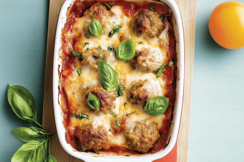 1. Preheat the oven to 180°C (356°F). 2. Mix 750g / 26.46oz beef mince, 1 tbsp grated fresh ginger, 3 thinly sliced spring onions, and 3 tbsp chopped fresh coriander in a bowl. 3. Stir in 3 tbsp coconut flour, 0.5 trimmed, seeded and finely chopped red pepper, 150g / 5.29oz fresh grated pineapple with liquid squeezed out, and 2 lightly beaten eggs. Season with salt and pepper. 4. Roll the mixture into golf ball-sized meatballs. 5. Heat coconut oil in a frying pan over high heat and brown the meatballs. 6. Place browned meatballs in an ovenproof dish, top with 500ml / 16.91fl oz homemade secret vegetable tomato sauce, and 120g / 4.23oz grated mozzarella. 7. Bake for about 25 minutes until bubbling and gooey.