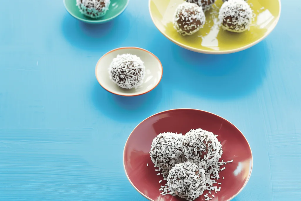 140g / 4.94oz Pitted dates, 150g / 5.29oz Raw cashews or almonds, 20g / 0.7oz Raw cacao powder, 40g / 1.41oz Hemp seeds, 1.5 tbsp Water, Desiccated/dried shredded coconut