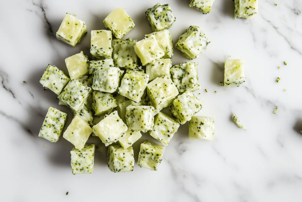 100g / 3.53oz peeled and cubed Potato, 250ml / 8.45fl oz Vegetable stock, 200g / 7.05oz washed and sliced Courgettes, 200g / 7.05oz Broccoli florets, a sprinkle grated Mild cheese
